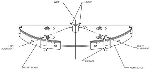 操作员调整游标的位置,使其与各自的瞄准线和垂线成一直线,然后就可以读数了。游标的位置直接从刻度尺和游标上读取。使用随每个观测台提供的图表把读数转换为垂线的位移值。