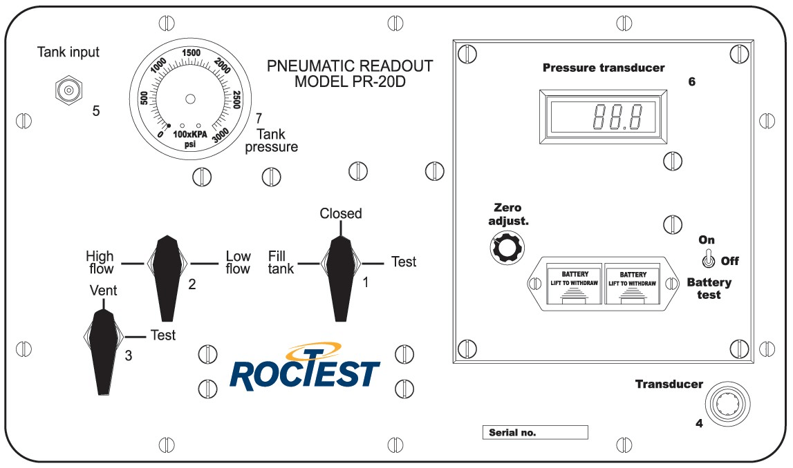 PR-20 便携式读数仪安装在一个坚固的防水外壳中,其中包含读取传感器和为自备氮气瓶充气的所有气体管路。