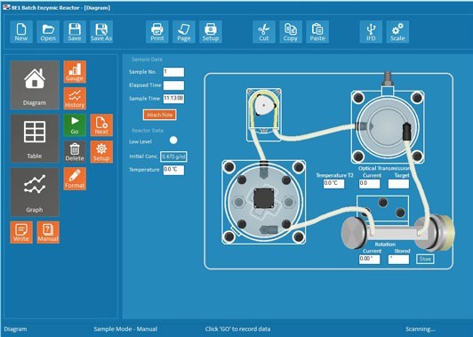 >一款台式设备,它包含一个配有完整电子控制台的真空定型ABS塑胶底座,带有蠕动泵的搅拌反应器取样电路,管状线圈热交换器和旋光仪安装在底座上。