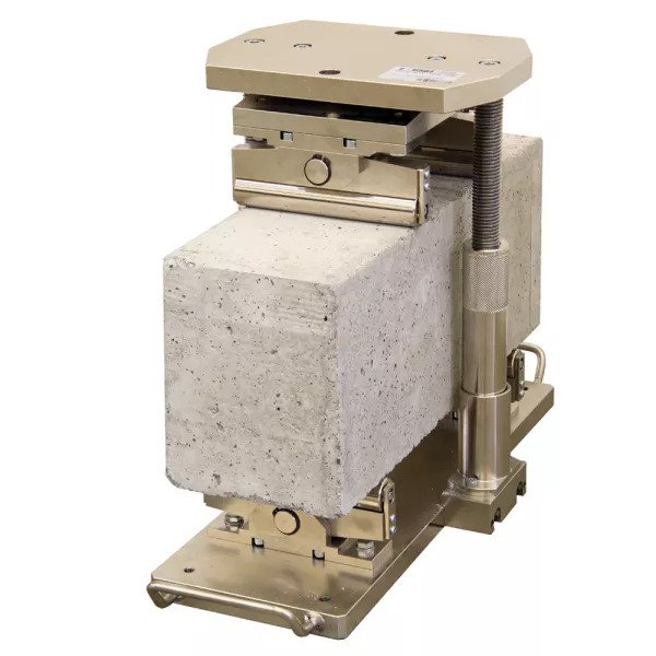 用于混凝土梁中心加载和三点加载测试的抗弯折测试附件。 总高度:用于 150 mm梁时可调整为 370 mm,用于100 mm梁时可调整为 320 mm。 通过移除底部压板或使用合适的定距块,调整垂直净空,可以轻松地将这些设备放置在压力试验机上。