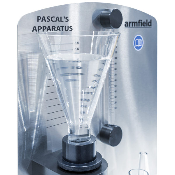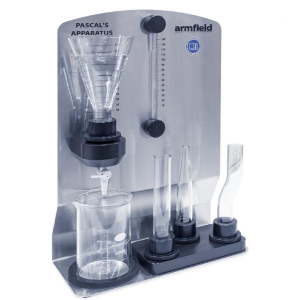 该装置旨在展示帕斯卡原理,由一个机加工的主体组成,该主体包含一个水平柔性隔膜,可以安装三个替代玻璃容器中的一个。