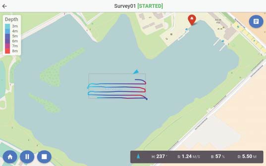 船载回声测深仪提供深度剖面。 连同导航 路径,这个深度剖面图将在增强版的 Atlantis 地图中显示出来。 该平台提供了一 个用户友好的基于 web 的可视化工具。 这些数据可以与各种水文仪器的其他测量数据 相结合。 在 Atlantis 云平台上也有数据处理 能力,如插值算法和数据存储。