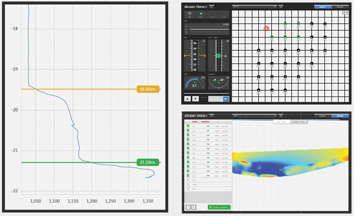 该软件可以直观地显示密度剖面、绞车速度、 绞车扭矩和DensX的倾角。当采集多个密度剖 面时,软件将生成淤泥的网格然后插值计算出疏浚体积。