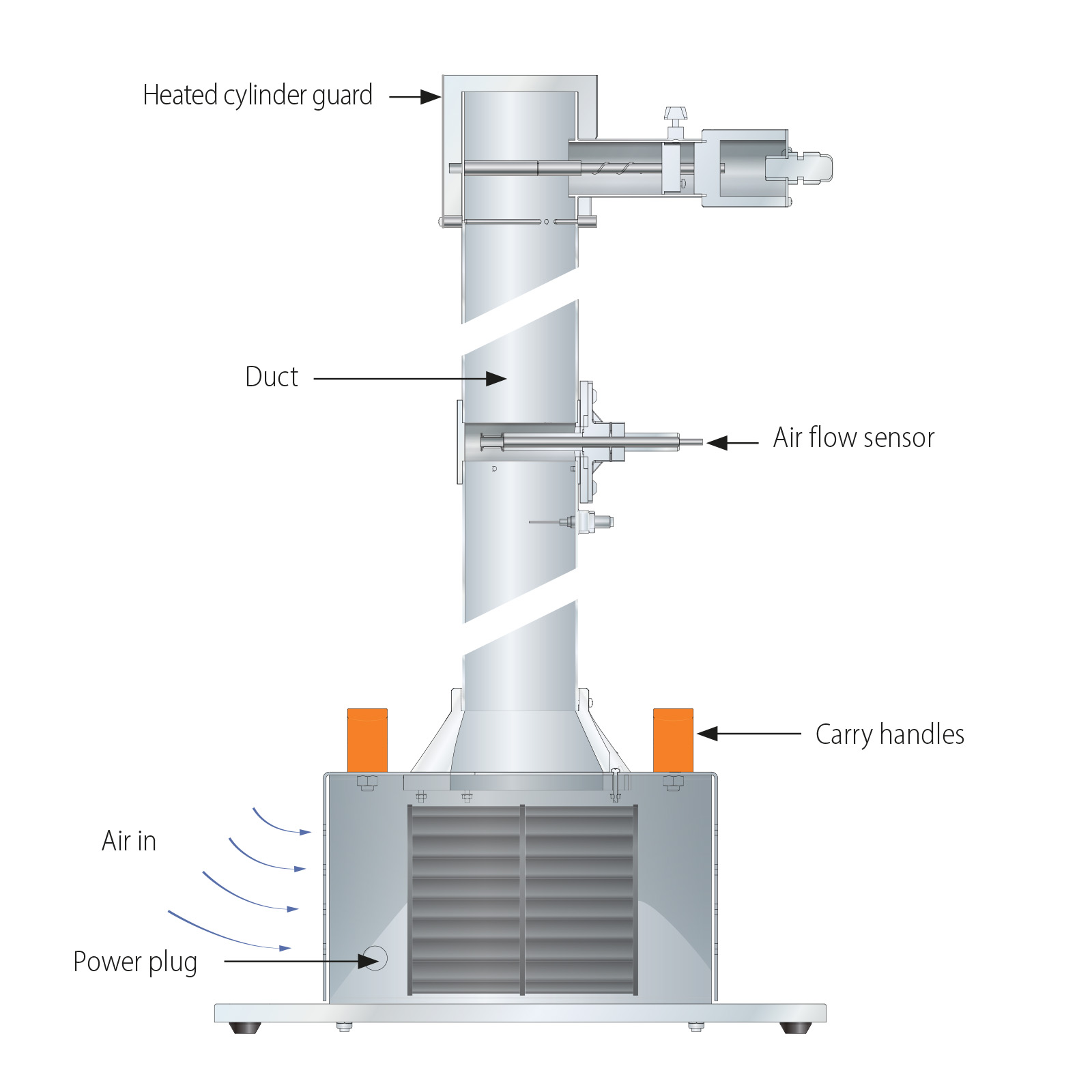 包括一个安装在垂直空气管道中的加热气瓶,在管道的底部装有风扇,该风扇可用于在气瓶上提供可变的气流