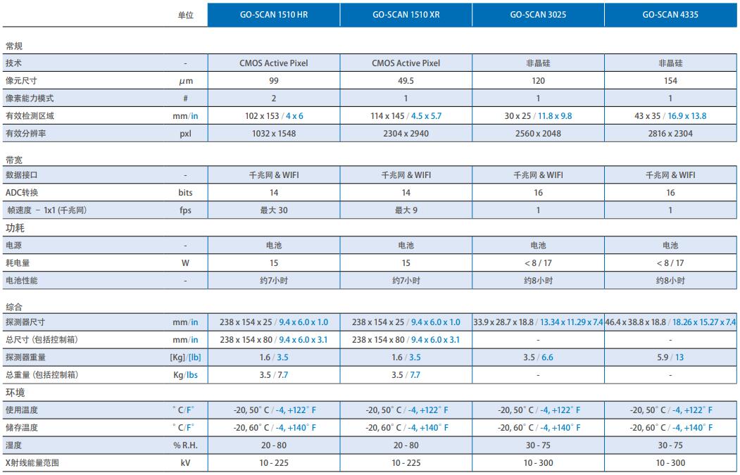 GO-SCAN 数字平板探测器技术参数