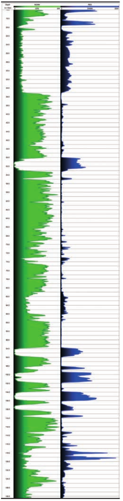 聚焦电阻率(LL3)测量提供好的垂直分辨率和合理的探测深度。当钻孔泥浆电阻率较低和岩层电阻率较高时,屏蔽测井可以取代经传统的电测井测井。