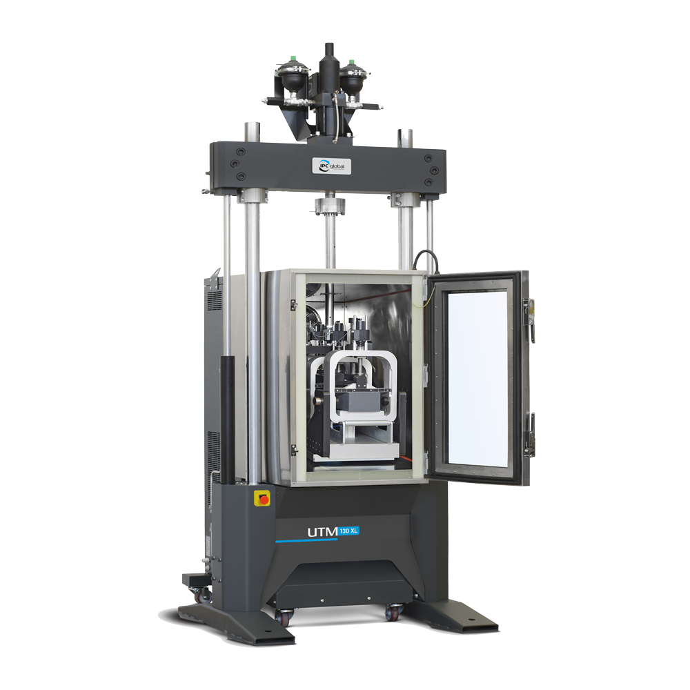道路工程研究领域中的 Universal Testing Machine(UTM)是指在通用材料的疲劳试验机上发展起来的专用试验设备,通常包括:动力系统,双柱式反力架,伺服动态作动器(气缸,油缸或电缸),环境箱,控制与数据采集系统,传感器(温度,力和位移等),试件固定装置,试验辅助工具,软件,计算机及线缆等组成的试验系统。UTM系统可以将成型的道路材料试件放在环境箱中,模拟材料的服役气候条件,通过加载杆对试件施加拉,压,弯,剪等各种形式的动态或静态作用,在此过程中,通过力和位移传感器测量材料的应力、应变响应,从而计算一系列的力学性能指标,进而用于沥青路面结构组合设计,沥青混合料配合比设计,预测材料的高低温性能,抗疲劳性能等路用性能。
