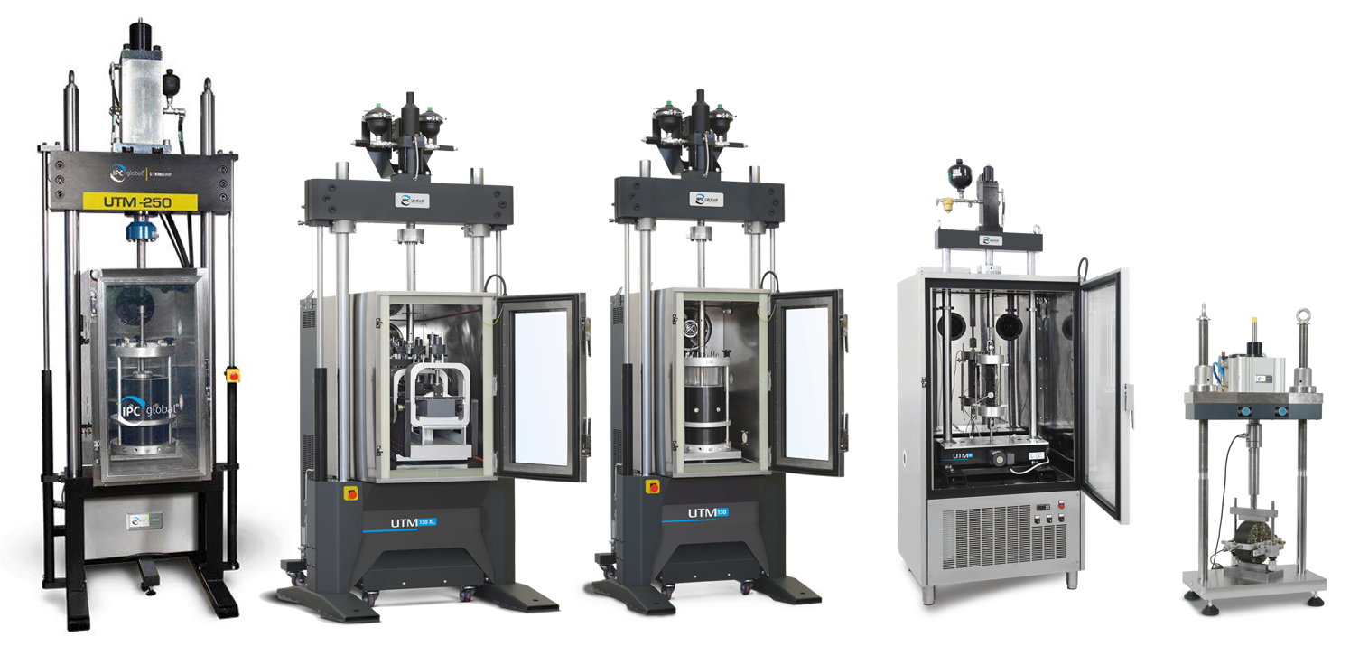 目前,CONTROLS-IPC的UTM系统共有5个常规型号,分别为:UTM-16P(气动型),UTM-30,UTM-130,UTM-130XL和UTM-250(从右至左)。其中,最受国内用户青睐的是UTM-30和UTM-130,在国内分别有40台左右的用户。如果您的主要测试对象是沥青混合料,那么UTM-30将是最合适的选择;如果您还希望研究无机结合料稳定材料,或是添加了建筑垃圾的材料等,可以选择UTM-130。中国也是世界上购买100kN以上量程UTM最多的国家。