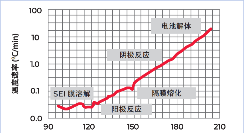 18650 电池热稳定性研究,温升速率-温度曲线